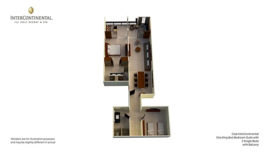 2 Bedroom Suite Club Lounge Access is 1679 square feet and includes either a king-size bed 150-183 width or 2 single beds 80-130 width plus extra beds on demand, hairdryer, tea and coffee making facilities , safe, and bathrobes.